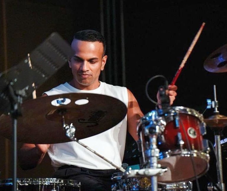 Stan Calvin is a free-spirited visionary deeply in love with the rhythms of drums, tabla, and percussion, exploring the soulful realms of fusion soul and funk. As a seasoned drummer and educator, he embraces the magic of live percussion and electronic triggers, blending the vibes of jazz, Latin, R&B, and the rich traditions of Carnatic Indian music in his explosive performances.